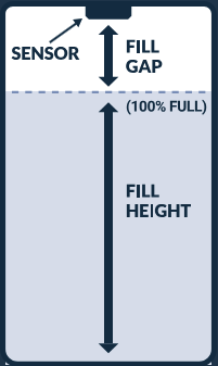 Fill Height is the distance from the bottom of the container to the point where the bin should be considered 100% full. This is the usable height of the container for waste.