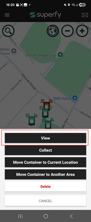 - Tap on the Arrow beside the Container Name at the bottom of the screen to open the Container Information screen.
